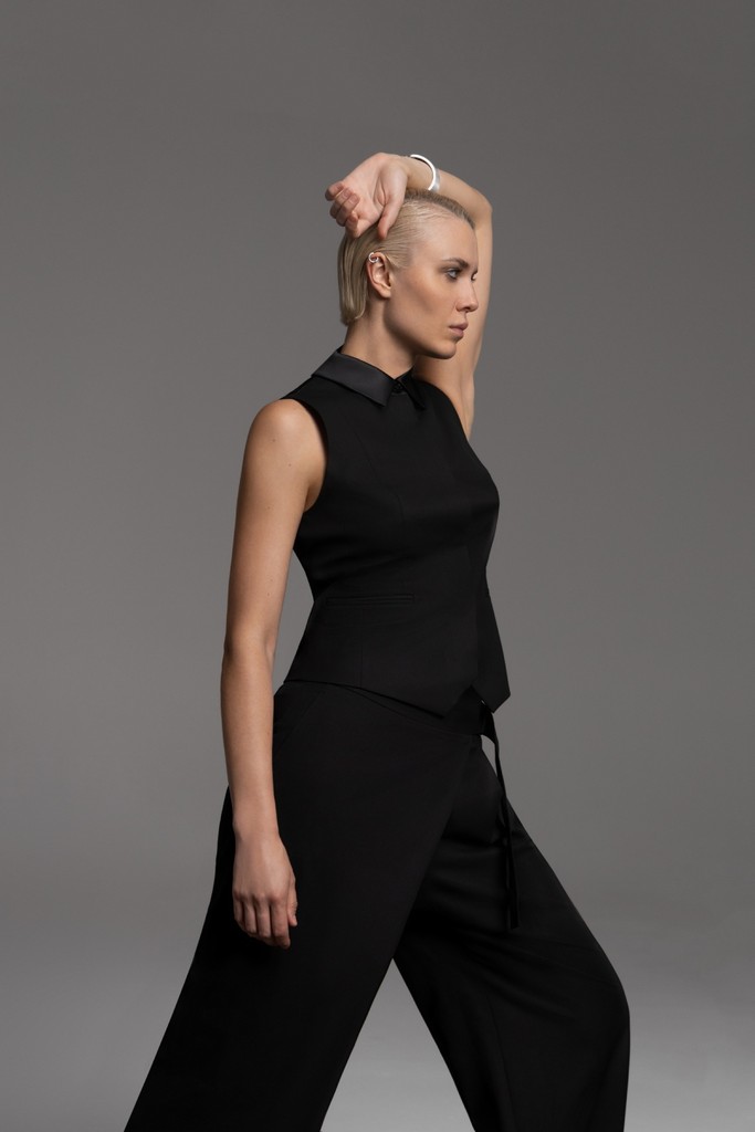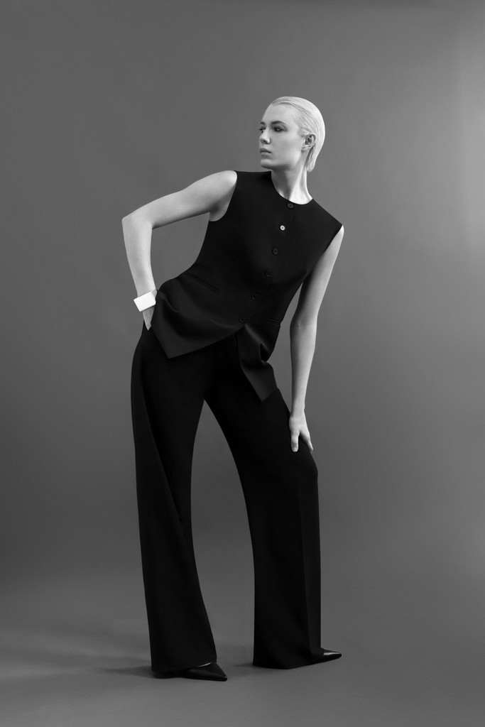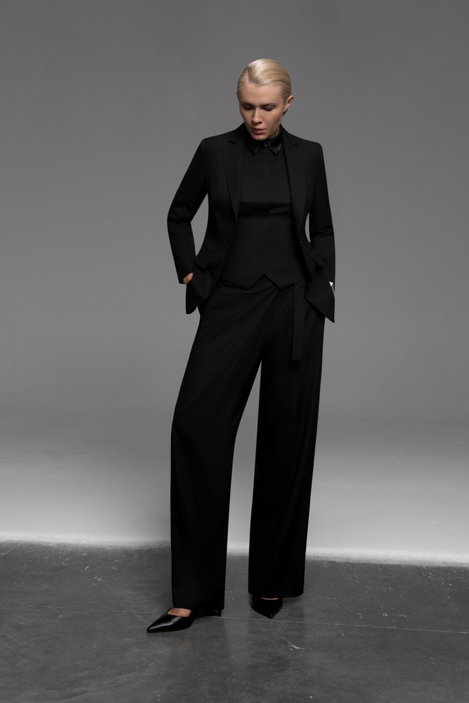 В сезоне F/W 2025-26, адаптируя модные тренды, дизайнер Васса использовала свои основные проверенные временем конструкции моделей. Базовые принципы VASSA&Co - геометрия линий, строгость силуэта, трансформация деталей, контрастный колор-блок и трендовые цвета на базе черного и белого – делают эту коллекцию вневременной.