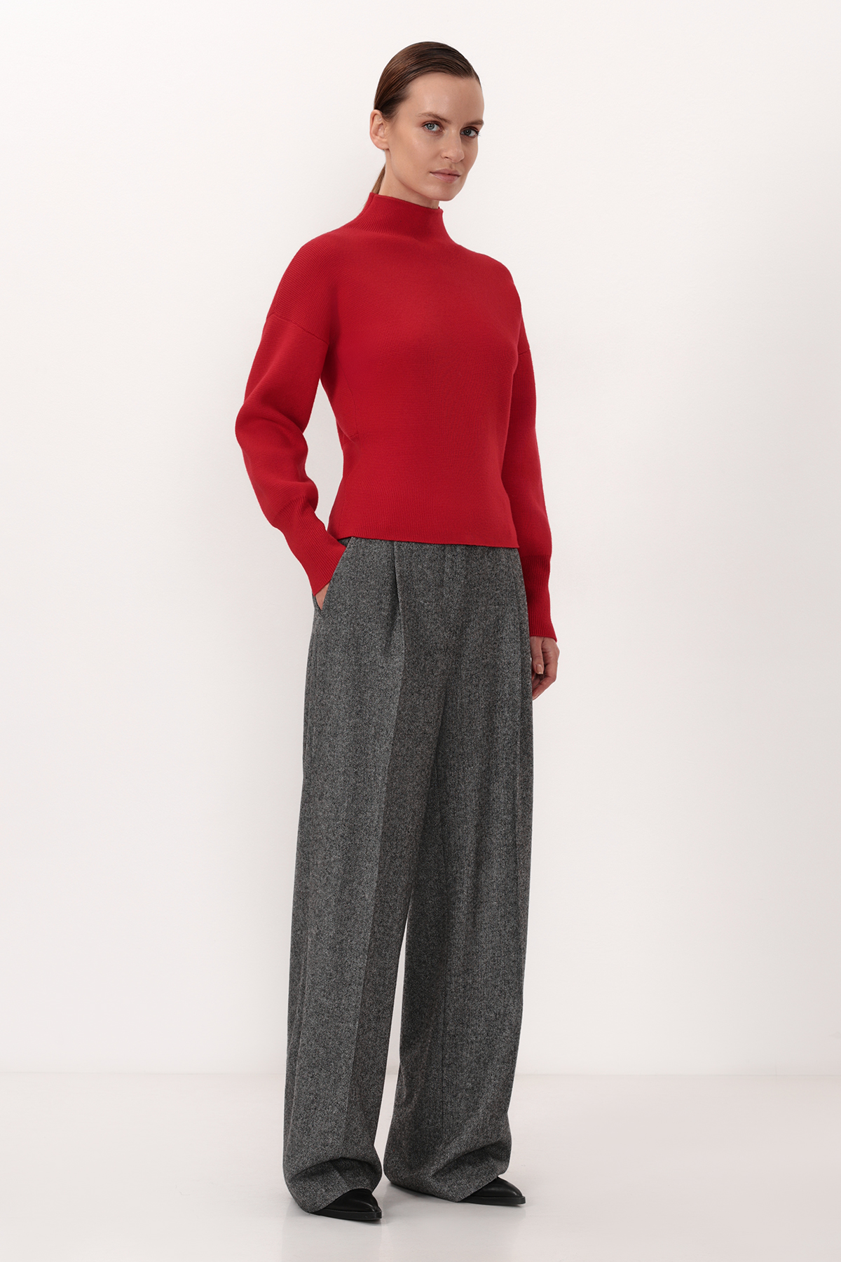Джемпер с воротником-стойкой, выполненный из сочетания двух дышаших тканей. Комбинация первоклассной шерсти и натурального хлопка делает модель более износостойкой и комфортной в носке практически при любой температуре.