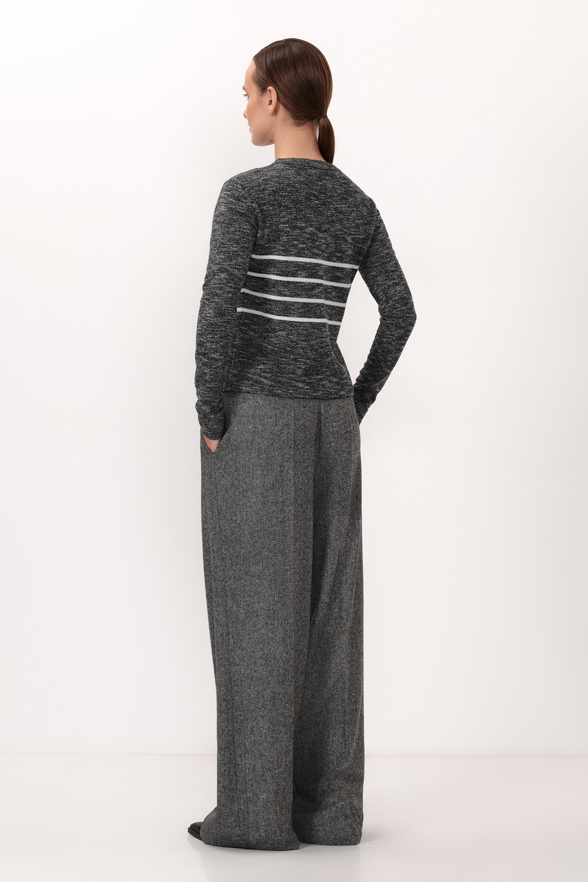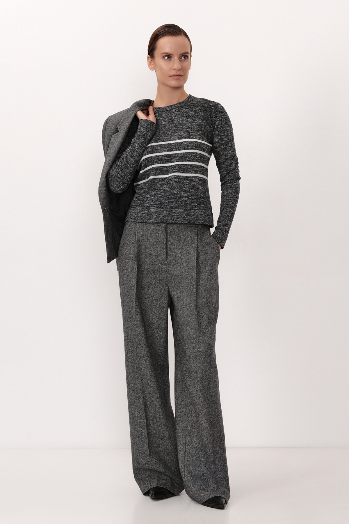 Джемпер полуприталенного силуэта с принтом в горизонтальную полоску, выполненный из мягкой и гипоаллергенной шерсти мериноса.
