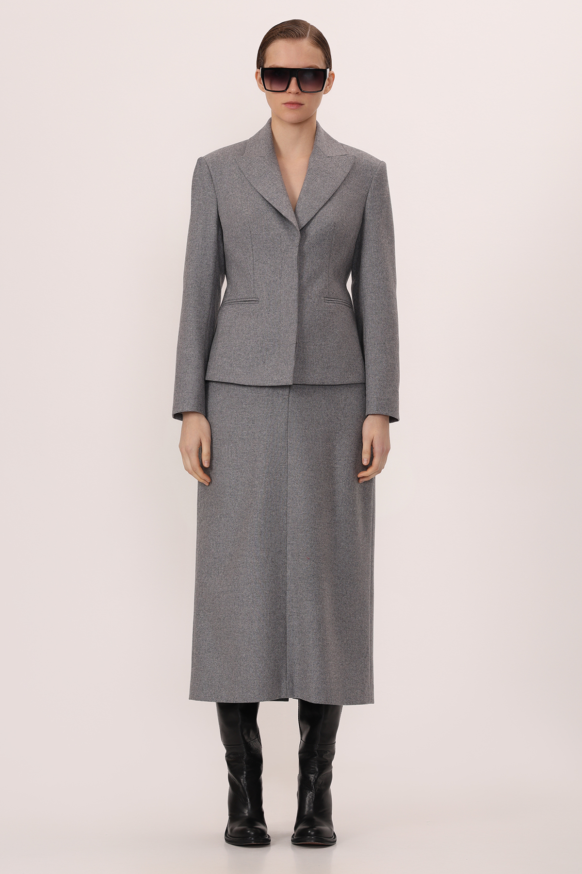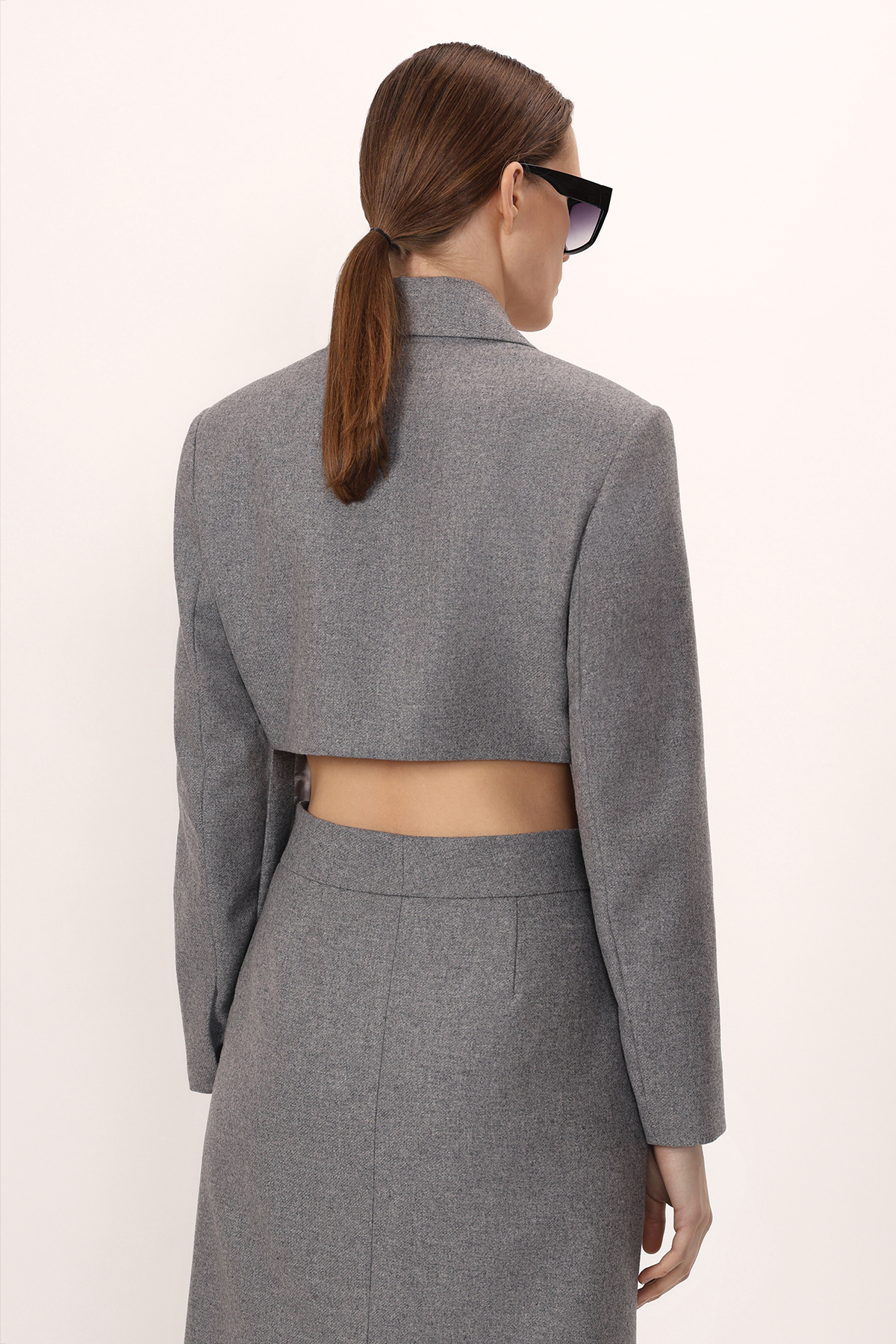 Однобортный жакет приталенного силуэта с укороченной спинкой, выполненный из итальянской фланели. Модель вдохновленная показом VASSA&Co.