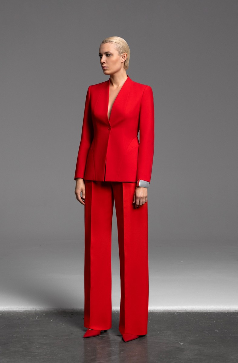 - модели с двубортным жакетом, приталенного силуэта, oversize жакетом, — жакетом со съемными деталями, с жакетом-трансформером;